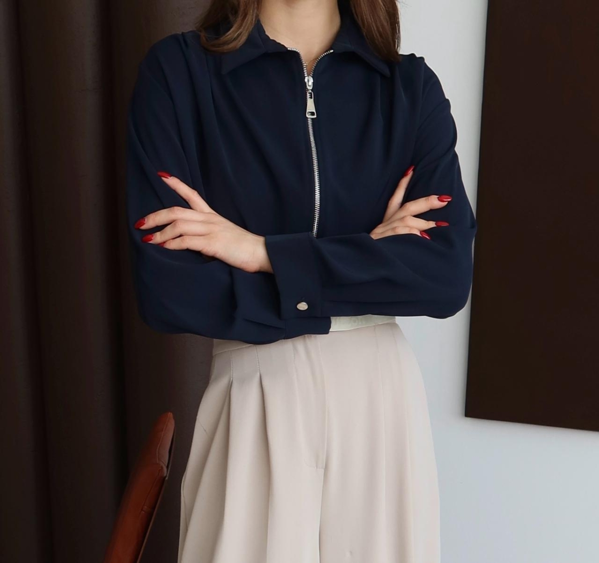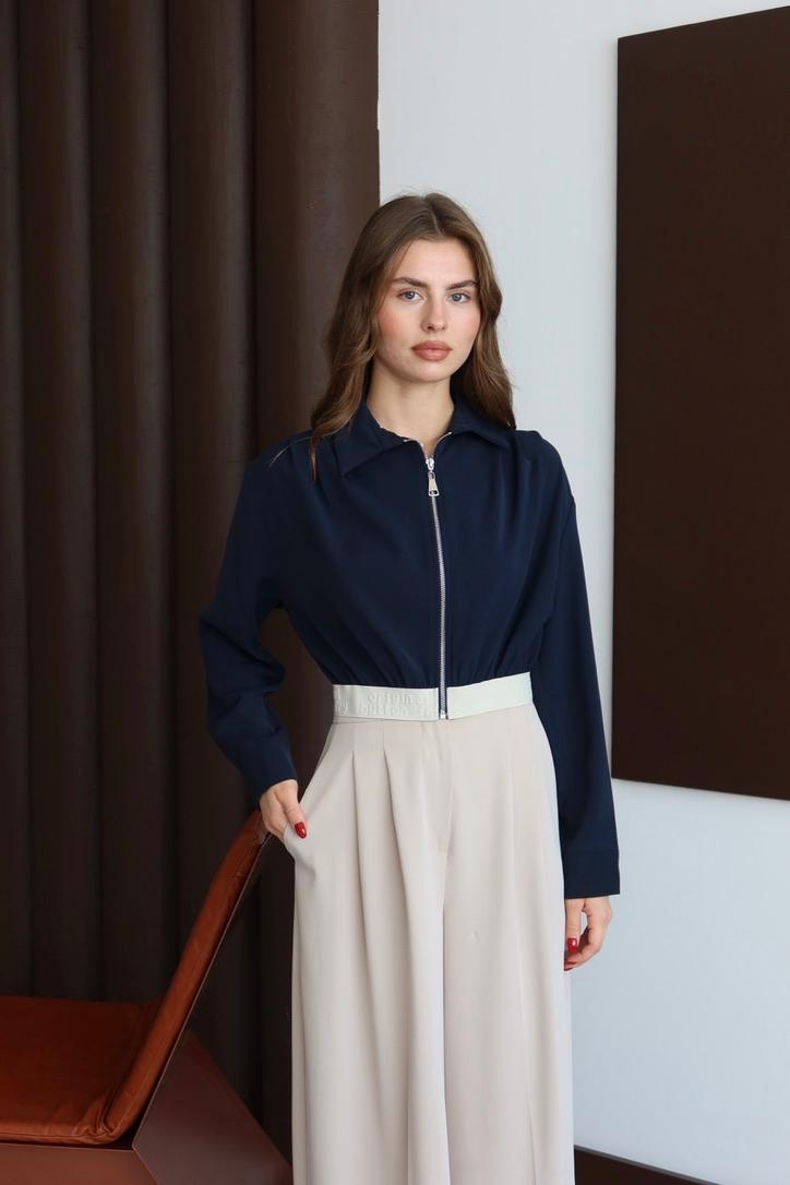 POLO Yaka Önü Fermuar Beli lastikli Ceket