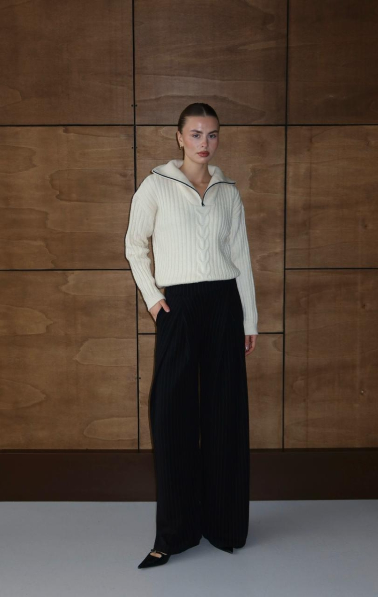Gramajlı Modal İnce Çizgi Kapama Pile Pantalon