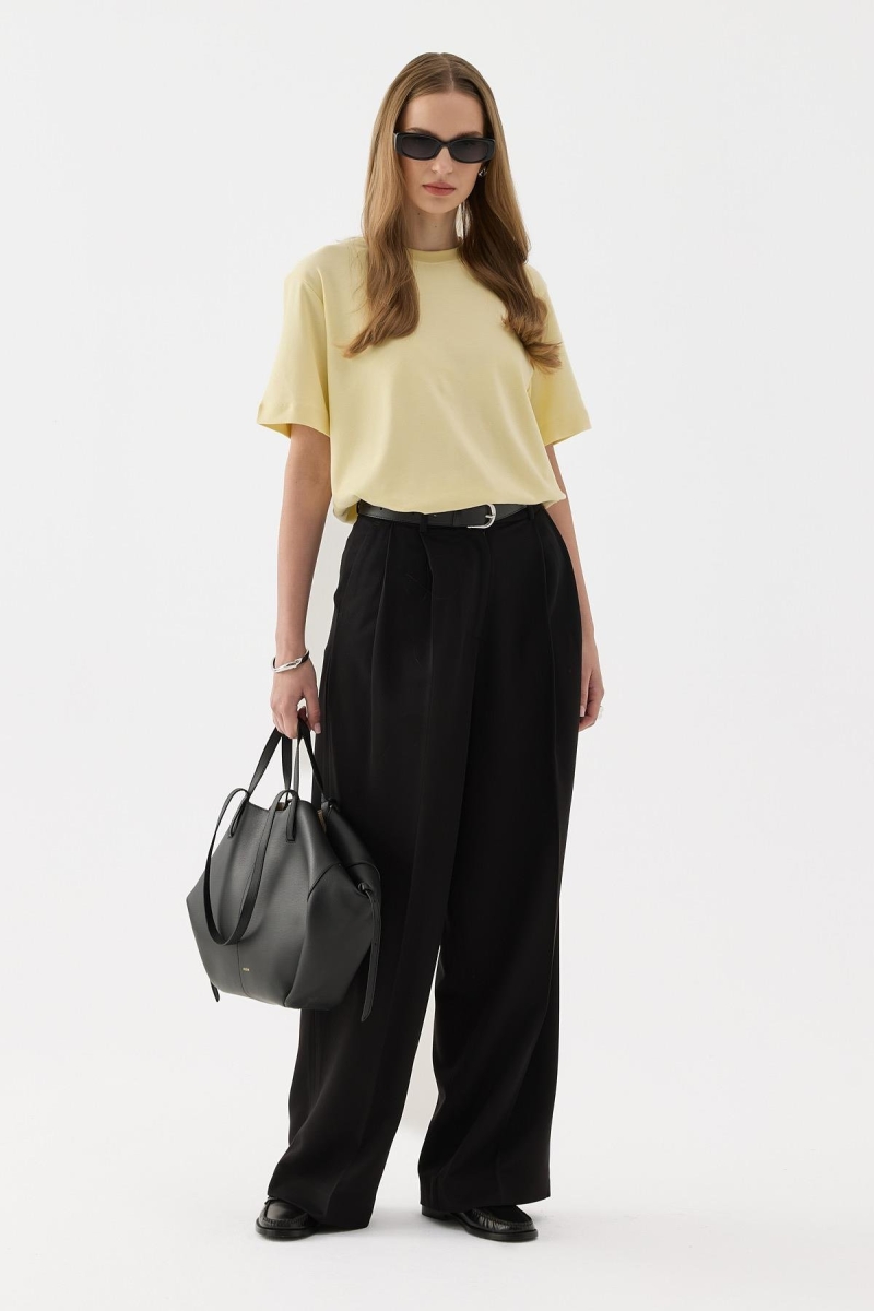 Maddy Pantolon, modern çizgileri ve sade şıklığıyla gardırobunuzun vazgeçilmez parçası olmaya aday. Yüksek bel tasarımı ve dökümlü yapısı sayesinde hem rahat bir kullanım sunar hem de zarif bir siluet oluşturur. Ofisten günlük kullanıma kadar pek çok farklı stile kolayca uyum sağlar.