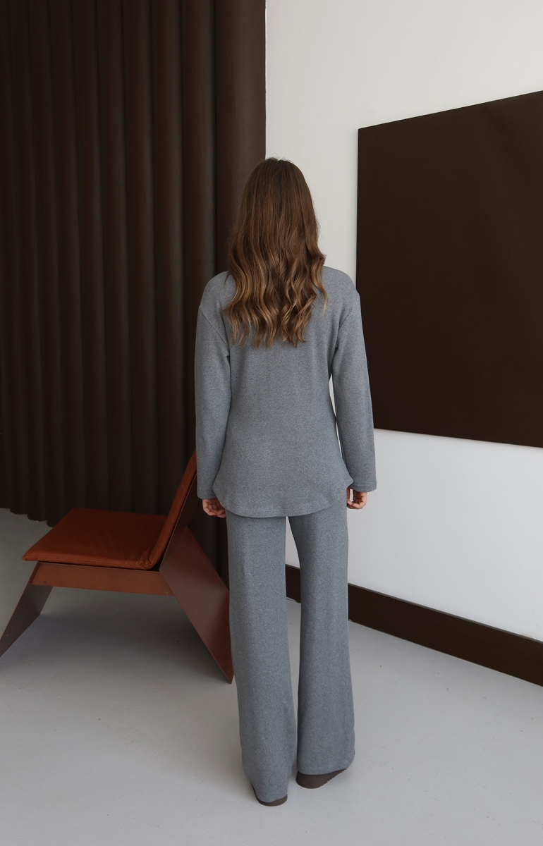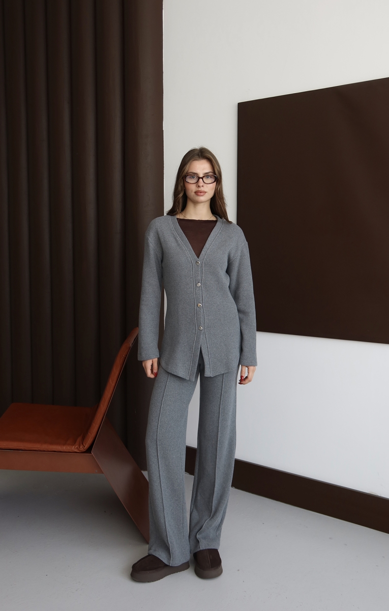 Soğuk havalarda katmanlı giyime uyum sağlayan bu takım, özellikle kışlık triko takım, kadın ev kombini, rahat kesim triko pantolon, şık triko ceket gibi ürün arayanların tercihi haline gelmiştir. Zamansız gri tonu ile dolabınızın her dönem favorisi olmaya aday bir settir.