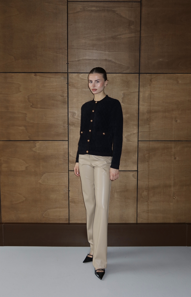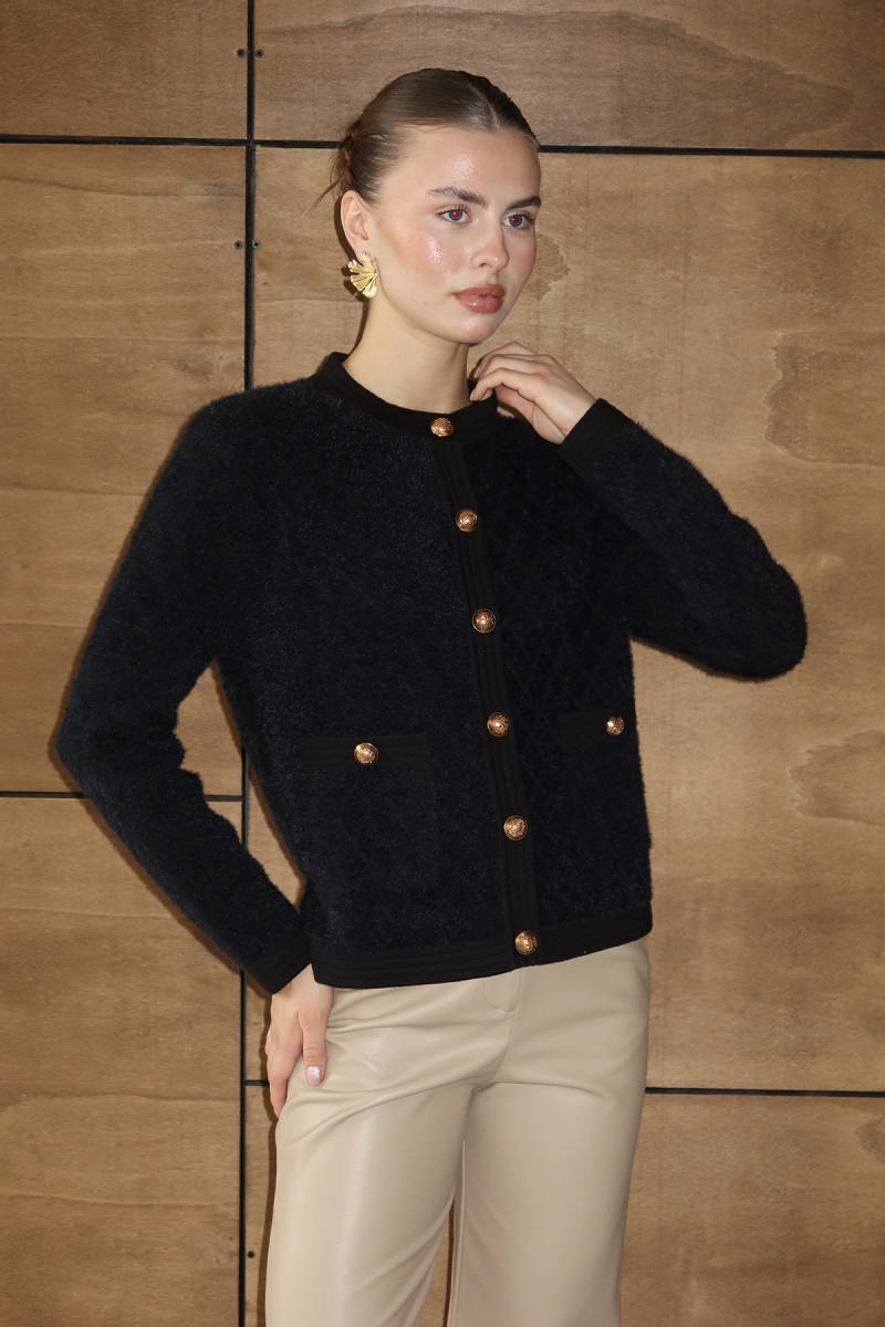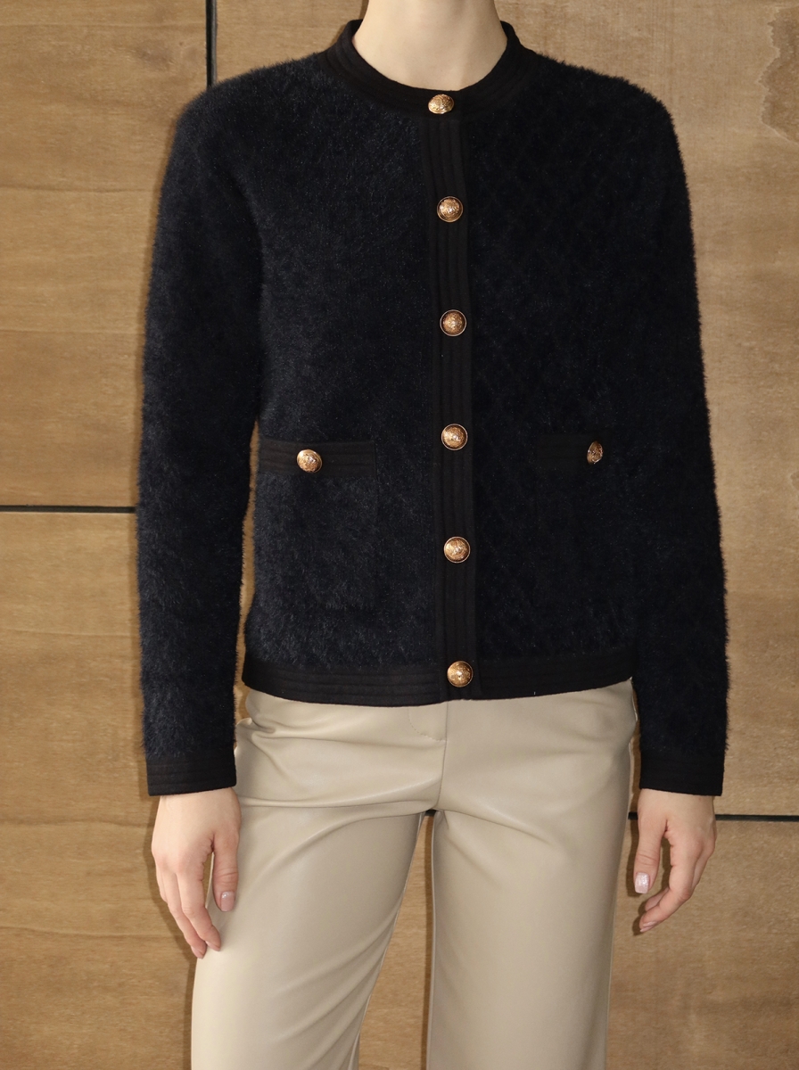 Bisiklet yaka, gold düğme detaylı triko ceket